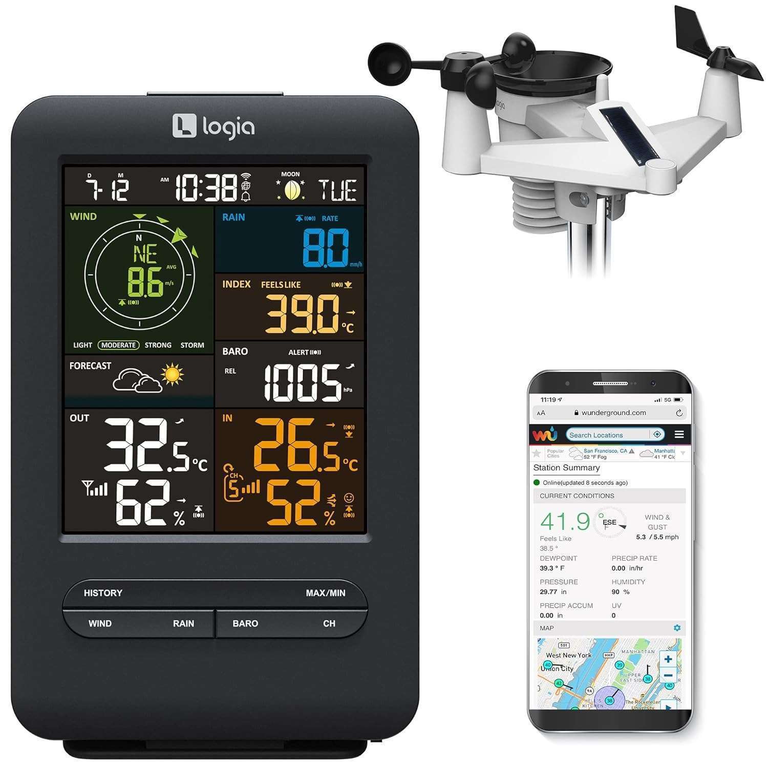 Logia 15-in-1 Wi-Fi Weather Station with 5-in-1 Solar Sensor